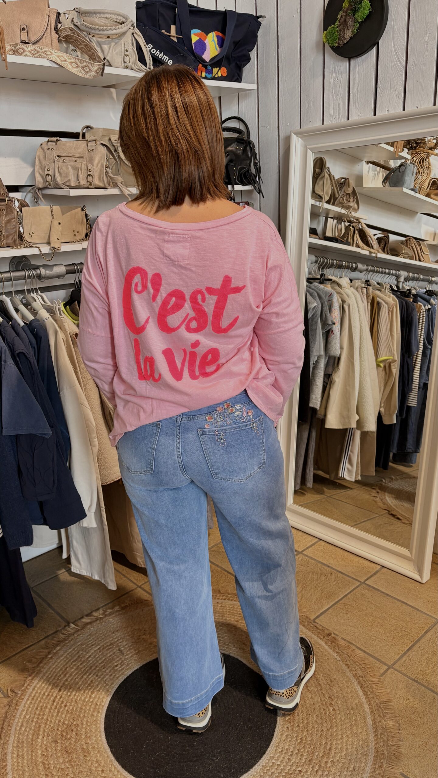 T-shirt « C’est la vie » – Taille unique, couleur rose